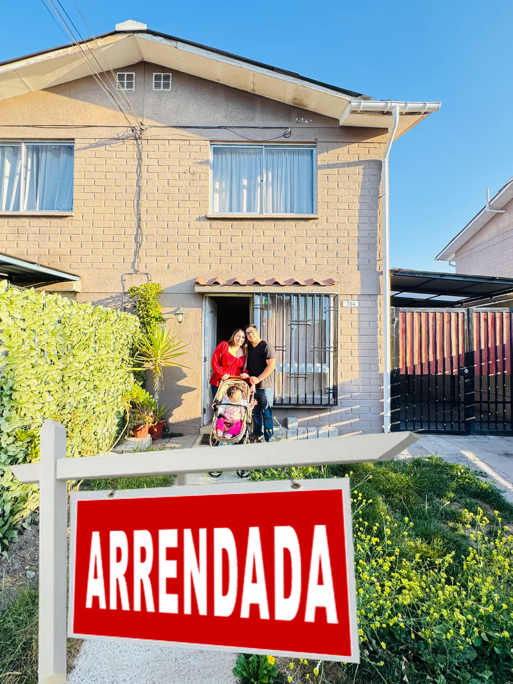 Patio grande con 74 mts2 (aprox). Con cobertizo. Antejardín con entrada de auto techada hasta la puerta de entrada.